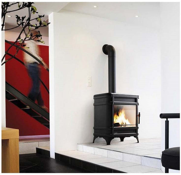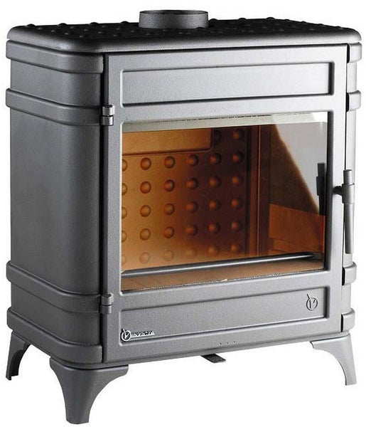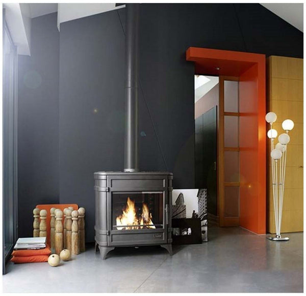 - Design : Finitions en acier et en fonte avec une large vitre qui offre une vue panoramique sur le feu.